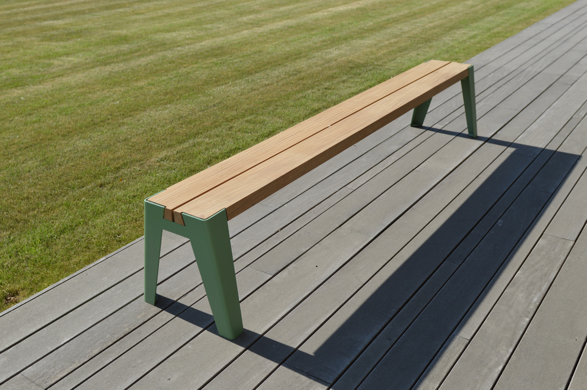 The backrest for the Gordes Bench consists of aluminium and Afrormosia or thermo Frake which is attached to the bench.